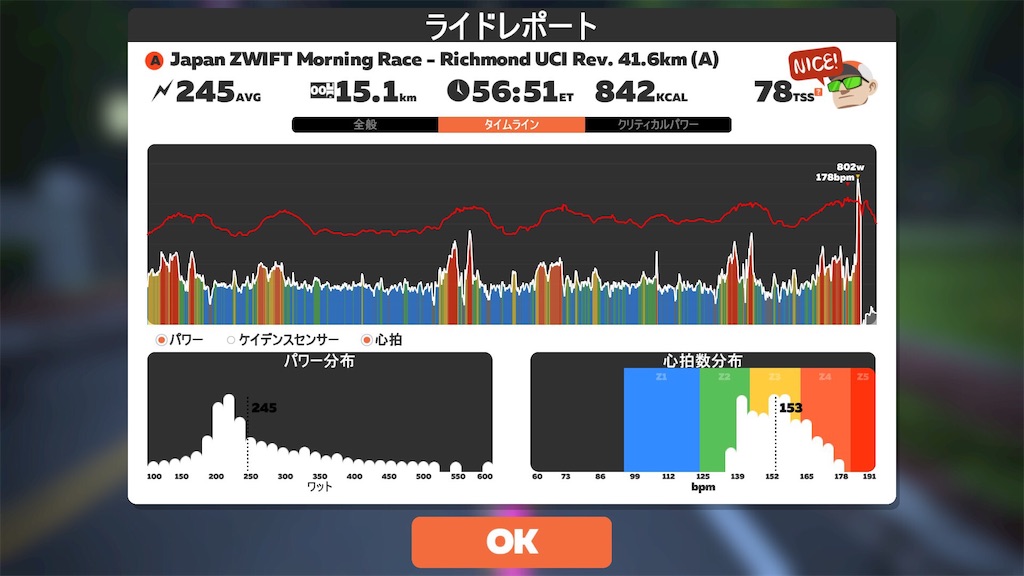 ZwiftPowerでは優勝していてGainしたからまあ良いか。